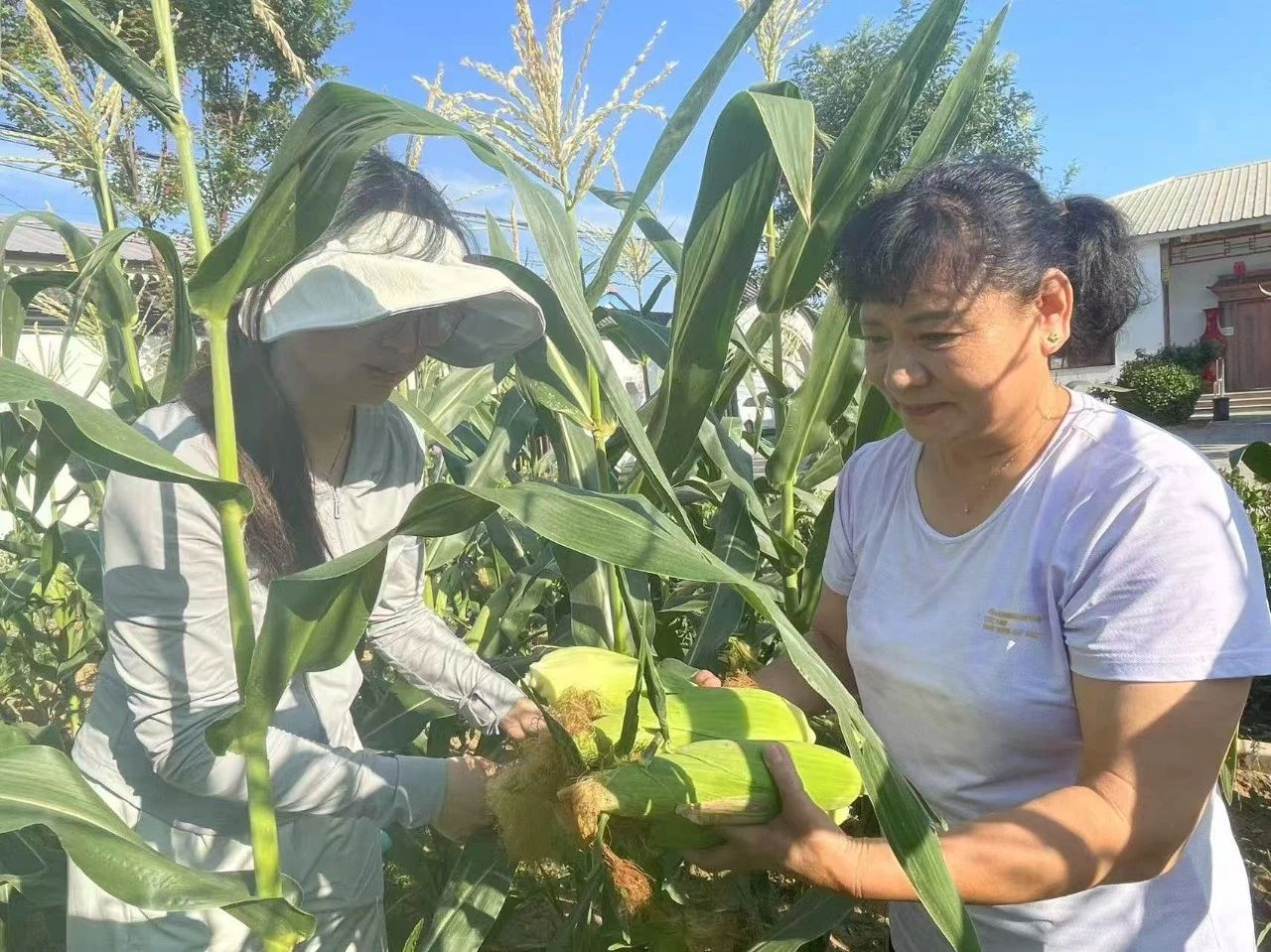 团队成员在“乐年餐桌”助老服务点担任志愿者,务实开展公益助老服务,累计为180余位老人提供早餐分发及餐后环境卫生整理服务,传递关怀与温暖。同时深入田间,积极参与农田劳作,协助完成约200根玉米的采摘任务,亲身体验农业生产艰辛,深化对乡村的理解与情感认同。