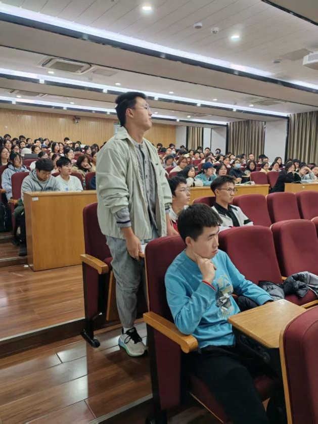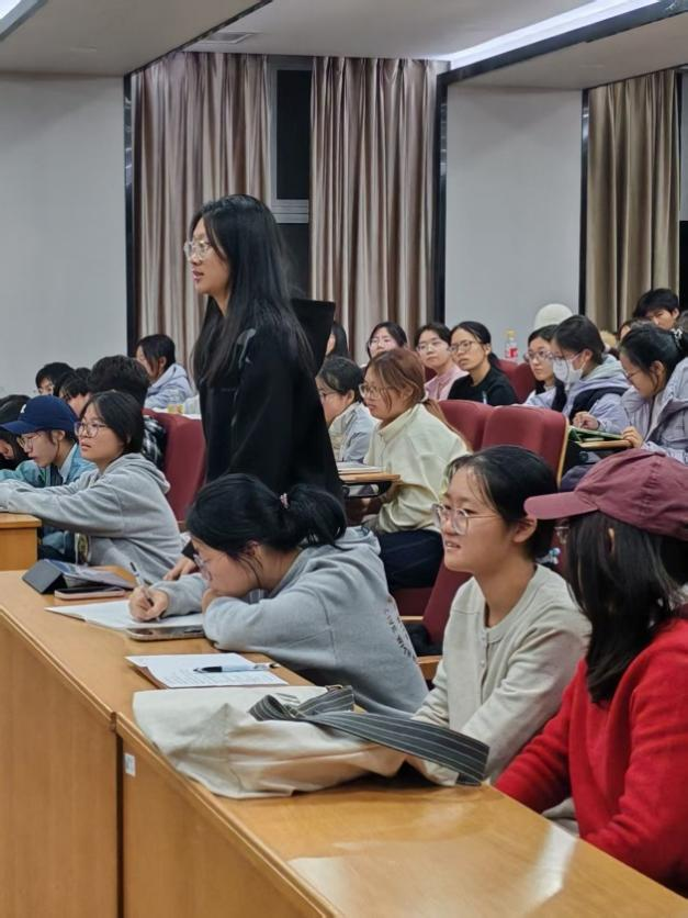 活动伊始,马克思主义学院副教授张晋老师以“山河为证,精神永存——伟大抗战精神的当代践行与传承”为主题。以历史脉络为轴,结合抗战时期的经典战役与英雄事迹,深入阐释了伟大抗战精神“天下兴亡、匹夫有责”的爱国情怀;视死如归、宁死不屈的民族气节;不畏强暴、血战到底的英雄气概;百折不挠、坚忍不拔的必胜信念。同时,张晋老师围绕党史发展关键节点、共青团的初心使命、团员义务与责任等核心内容,通过案例分析、互动问答等形式,让知识变得生动易懂,帮助学员理清理论脉络、筑牢思想根基。