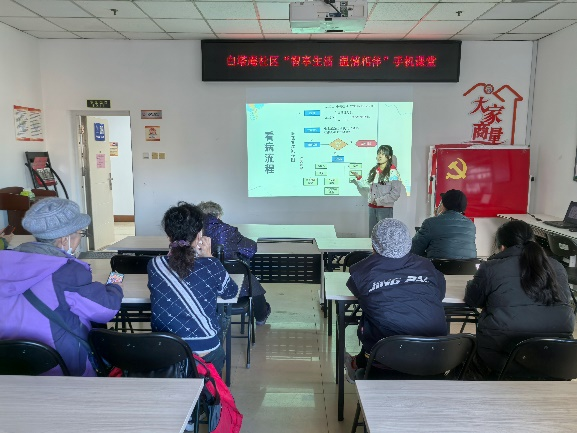 生活出行部分重点讲解了如何使用地图类APP查询公交线路、实时公交及打车功能,助力老人出行更加便捷、安全。在支付与就医环节,志愿者耐心演示了微信和支付宝的付款、收款操作,并强调支付安全注意事项。同时,通过现场演示主流医院小程序预约挂号的流程,帮助老人掌握线上挂号的实用技能,减轻就医过程中的不便。