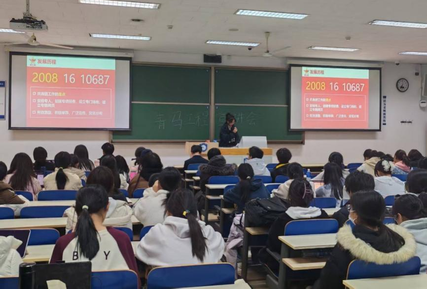 随后,姜嘉利为同学们系统解读了“青马工程”项目的整体情况。姜嘉利同学从背景职能、组织架构、发展历程和培养机制四个维度展开,通过清晰的梳理和细致的讲解,全面展现了“青马工程”的设立宗旨与运行模式,有效增进了同学们对“青马工程”的理解与认识。