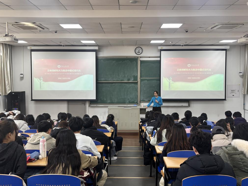12月23日,培训班特邀马克思主义学院孟翊洁老师作《正确理解和大力推进中国式现代化》专题理论授课。孟老师以宏阔的历史视野和严谨的理论逻辑,紧扣党的二十大精神,系统阐述了新时代党的中心任务。课程深入剖析了中国式现代化的科学内涵、鲜明特色、本质要求与重大原则,结合我国社会发展实际,清晰展现了从“四个现代化”宏伟目标到“中国式现代化”系统部署的历史演进与理论飞跃。