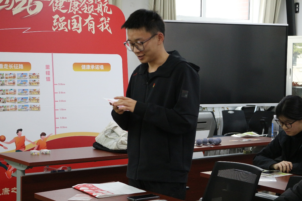 本次活动围绕“学、动、思、答”四个环节层层展开,从理论学习到实践体验,从自我反思到公开承诺,引导大家把“健康第一”刻在内心里、落在行动上,以青春之姿助力健康中国建设。