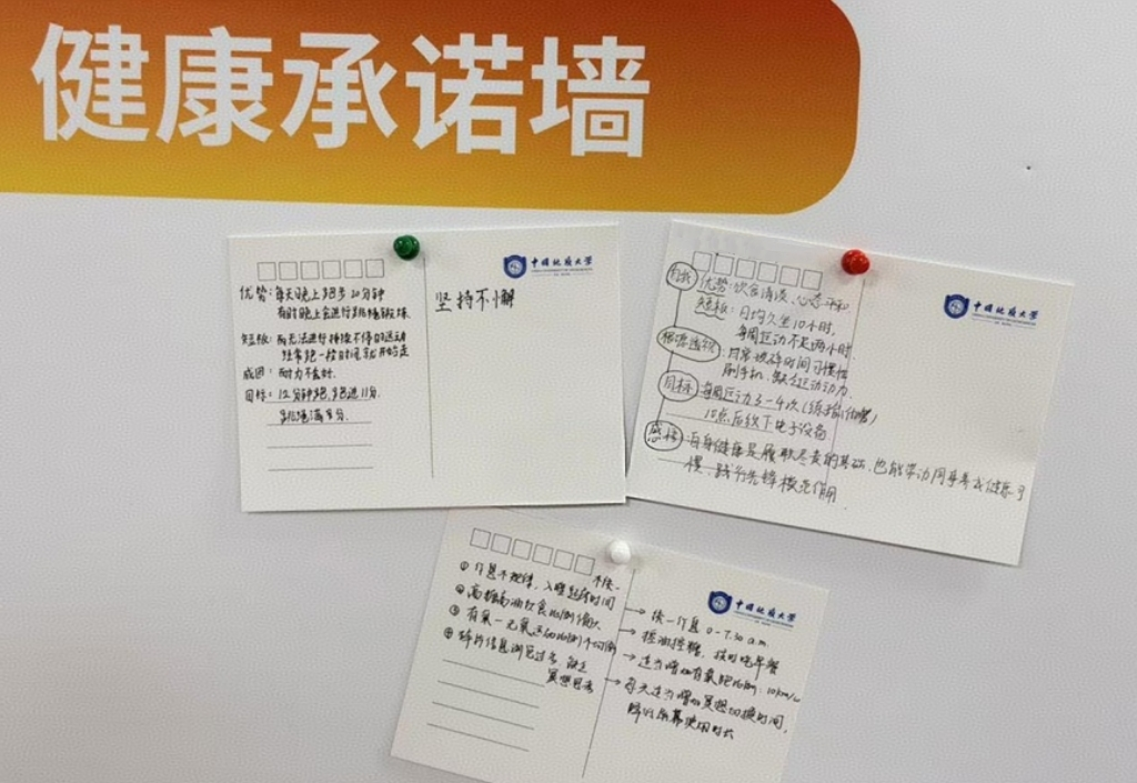 “思”环节引导大家向内观照,将自我剖析、根源透视与目标牵引写到卡片上。在交流分享中坦诚反思、互相启发,引导党员同志带头树立“健康第一”理念,主动作出健康表率、凝聚奋进力量,带动身边同学共同践行理念,真正实现从“知”到“行”的认知跃迁。