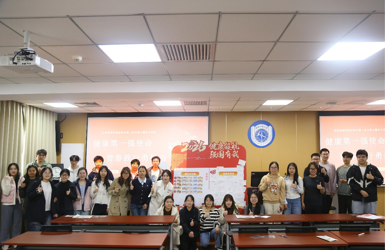 本次活动通过“学、动、思、答”四维联动,实现了理论武装与实践锻炼的统一、个人反思与集体承诺的衔接。经管学院本科生第二党支部将持续深化“健康第一”理念,推动党员在健康校园、健康中国建设中发挥先锋模范作用,让青春在践行使命中绽放健康光彩。