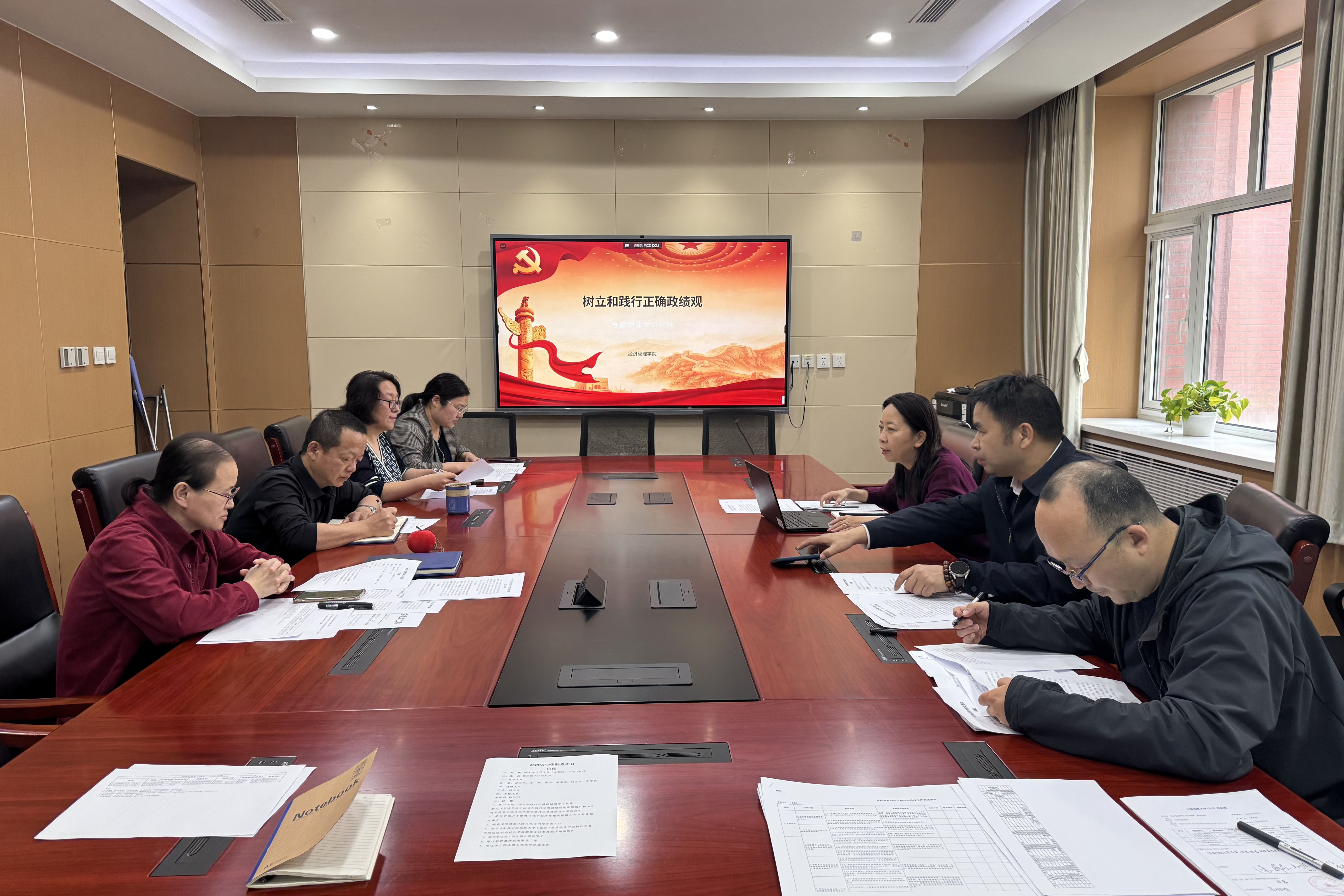 为深入贯彻落实学校关于开展树立和践行正确政绩观学习教育的部署要求,进一步强化学院党员领导干部履职尽责,4月2日,经济管理学院举办树立和践行正确政绩观学习教育读书班,党委委员参加学习,通过读原著、学原文、悟原理,紧密联系思想和工作实际,深入思考“政绩为谁而树、树什么样的政绩、靠什么树政绩”根本问题。